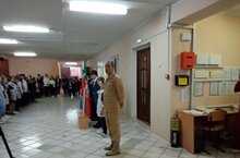 В МБОУ "Гимназия №4" на торжественной линейке, поднятия флага, присутствовал ветеран боевых действий Нуриев Р.Р. Он рассказал учащимся о сути патриотического воспитания.