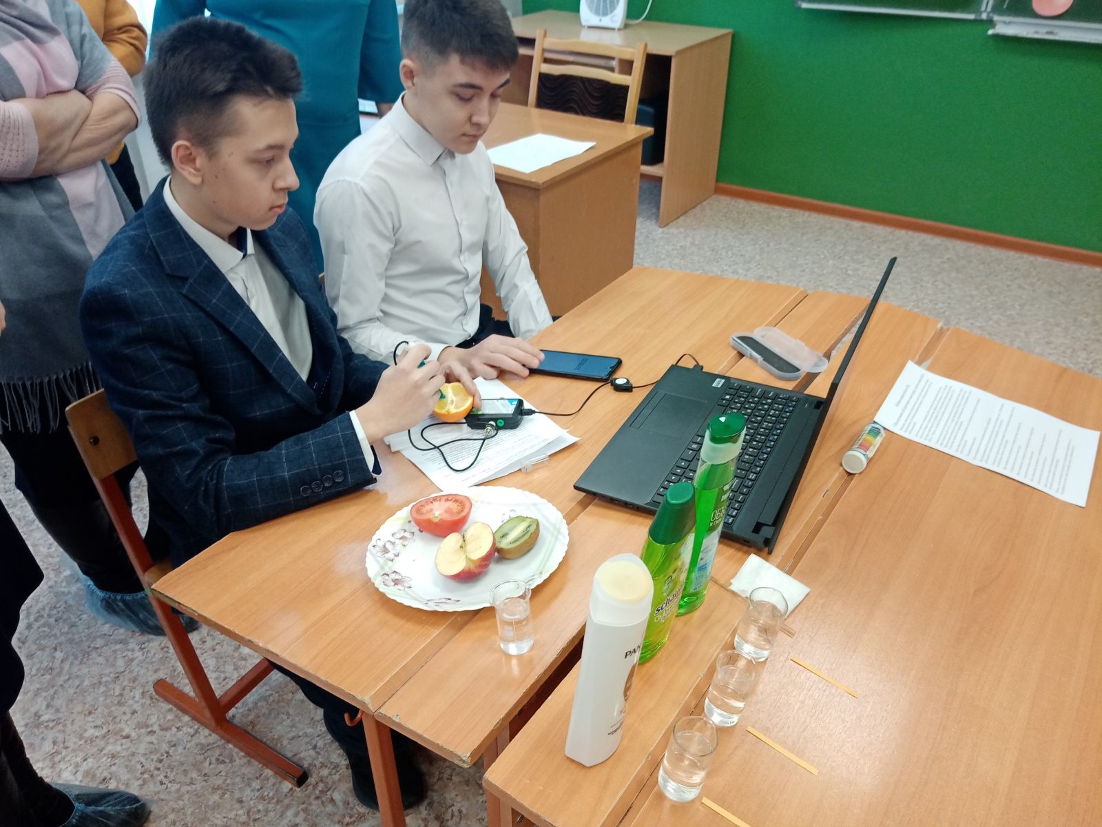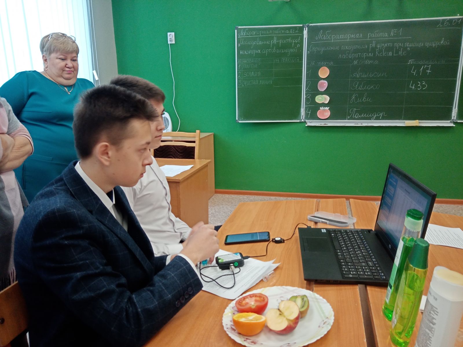 14 февраля в рамках проекта "Точка роста" в 10 классе прошло внеурочное мероприятие на тему "Определение показателя PH фруктов при помощи цифровой лаборатории Releon Lite 4". В ходе которого обучающиеся рассмотрели кислотность и щелочность фруктов, экспериментально измеряли PH растроров.
