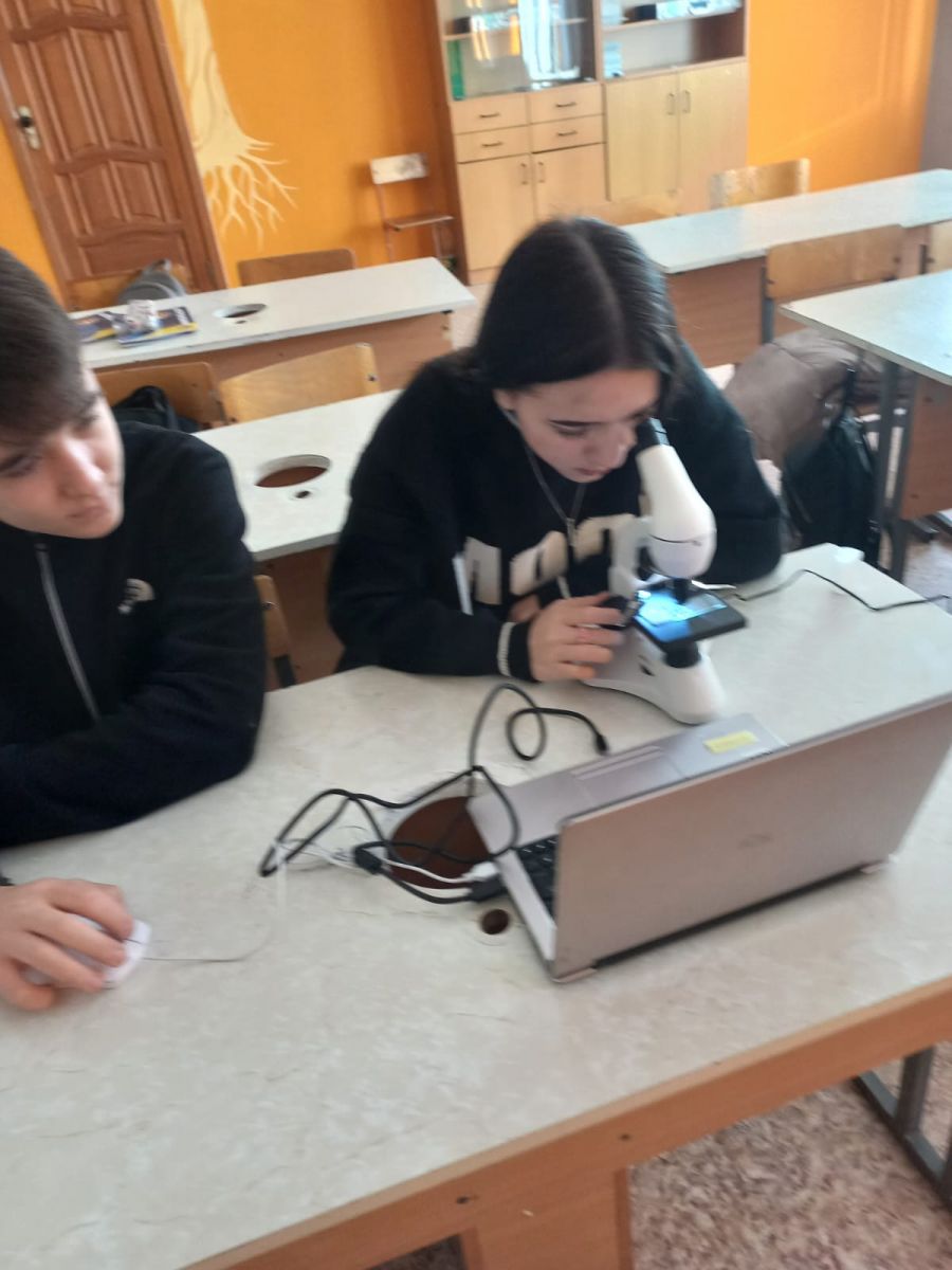 В 6 классе прошла абораторная работа "Изучение строения растительных тканей", с использованием микроскопа цифровой лаборатории.