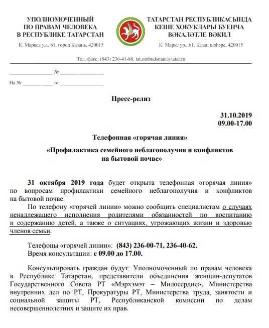 Телефонная "горячая линия" "Профилактика семейного неблагополучия и конфликтов на бытовой почве"