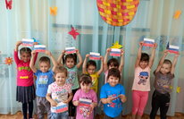 В детских ручках - маленький флажок