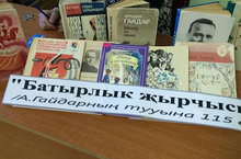 В школьной библиотеке прошла выставка книг "Батырлык җырчысы",посвящённая 115-летию со дня рождения А.П.Гайдара.Мәктәп китапханәсендә А. П. Гайдарның тууына 115 ел тулуга багышланган "Батырлык җырчысы"дип исемләнгән китап күргәзмәсе узды -