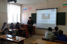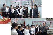 В рамках месячника патриотического воспитания учитель истории и обществознания Гафиятуллин Р.Ш. 19 февраля для 5-7 классов провел экскурсию в школьный краеведческий музей. Гафиятуллин Р.Ш. рассказал о памятных событиях и датах ВОВ, о односельчанах, которые участвовали в войне.