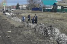 Учащиеся и учителя вышли на субботник. Раскидывали остатки снега и собирали мусор.