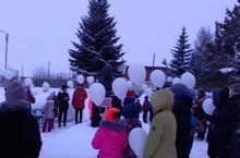 Сегодня в 18.00 учащиеся школы, учителя и родители запустили в небо белые шары в память о погибших в Кемерово.
