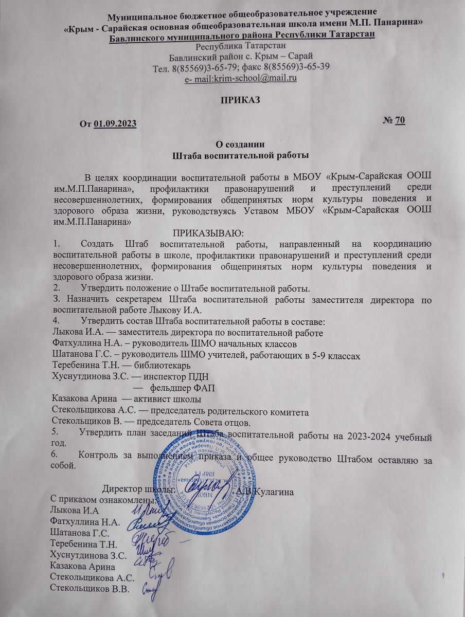 Муниципальное бюджетное общеобразовательное учреждение «Крым-Сарайская основная общеобразовательная школа имени М.П. Панарина» Бавлинского муниципального района Республики Татарстан/Татарстан Республикасы Баулы муниципаль районы «М.П. Панарин исемендәге Крым-Сарай төп гомуми белем мәктәбе» муниципаль бюджет гомуми белем учреждениесе