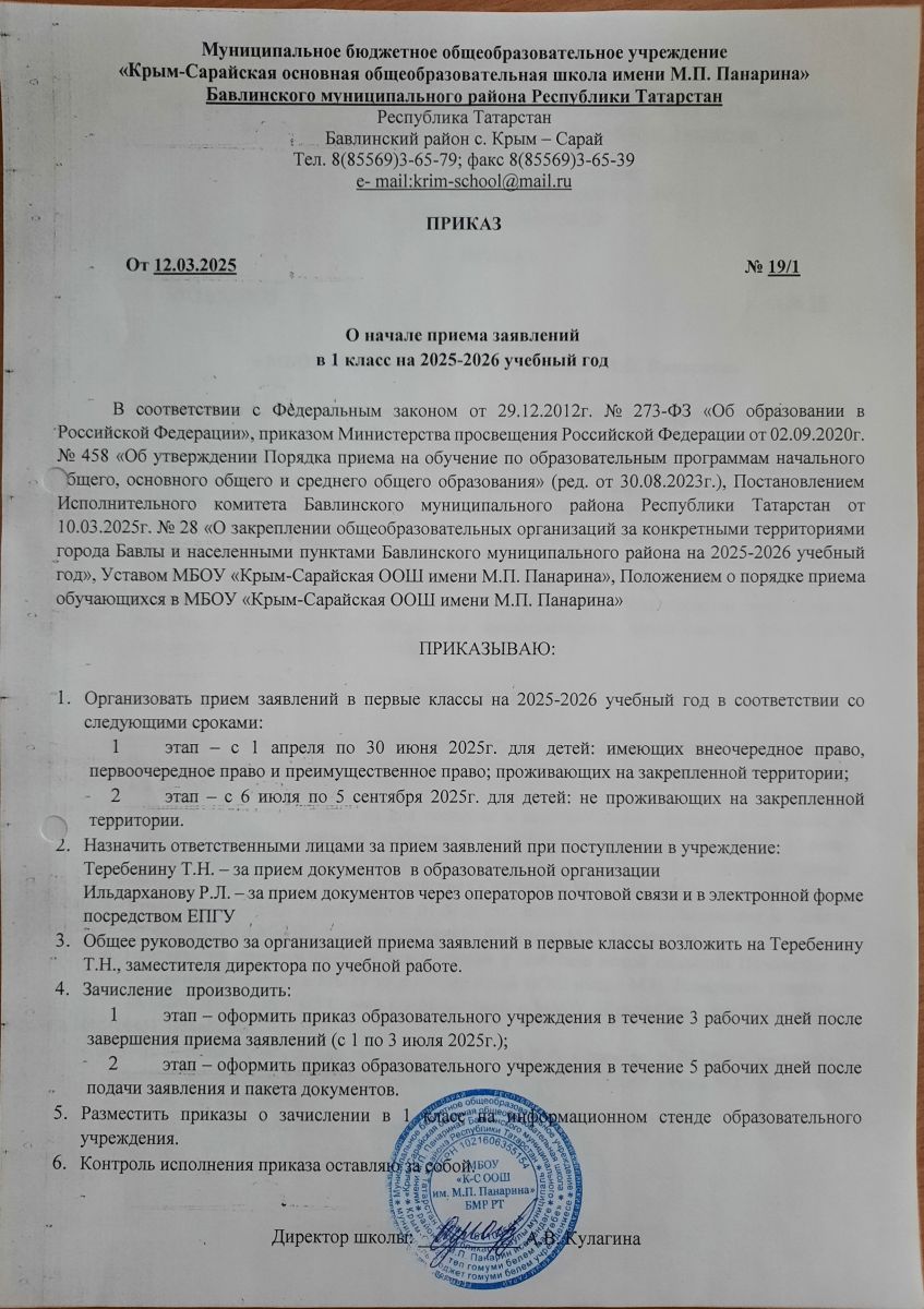 Муниципальное бюджетное общеобразовательное учреждение «Крым-Сарайская основная общеобразовательная школа имени М.П. Панарина» Бавлинского муниципального района Республики Татарстан/Татарстан Республикасы Баулы муниципаль районы «М.П. Панарин исемендәге Крым-Сарай төп гомуми белем мәктәбе» муниципаль бюджет гомуми белем учреждениесе