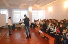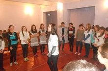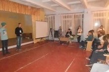 Выступление руководителей молодежного центра "Яшьләр дөньясы". Ребята раздали буклеты "Все обо всем".