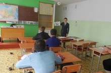 Урок ОБЖ проводит Гиззатуллин Рустам. Учитель Эндже Абузаровна.