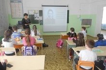 Китапханәче Тухватуллина Инзилә башлангыч сыйныф укучыларын Г.Тукайның тормыш юлы һәм иҗаты белән таныштырды. Укучылар презентация карады һәм сорауларга җавап бирде.