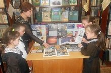 Библиотекарь организовала выствку, посвященную 55-летию полета Ю.А.Гагарина в космос.