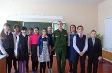 Сегодня в 6 классе прошло мероприятие, приуроченное ко Дню Защитника Отечества. На праздник был приглашен, недавно отслуживший в рядах Российской армии, бывший ученик нашей школы- Михайлов Андрей. Он ознакомил ребят с буднями армейской жизни. Ребята с интересом слушали про армейскую жизнь, получили ответы на интересующие их вопросы. Мероприятие продолжилось за круглым столом с чаепитием, поздравлениями девочек и интересными конкурсами.