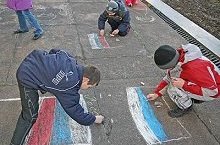 Сегодня во дворе школы было проведено мероприятие "Государство, в котором я живу", которое было приурочено ко Дню России. В ходе мероприятия ребята рисовали на асфальте, говорили о России, её государственных символах, о малой родине и о долге гражданина.