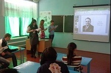Сегодня в фойе школы можно было увидеть выставку детских рисунков "По страницам книг Тукая". Выставка была организована учителями татарского языка, совместно с учителем ИЗО, в рамках месячника родного языка и посвящена Г.Тукаю. Для иллюстрирования на выбор каждому учащемуся были предложены стихи и сказки писателя, среди которых юные художники выбрали наиболее интересные и близкие им по духу. Ученица 9 класса, Гаврилова И., нарисовала портрет Г.Тукая.