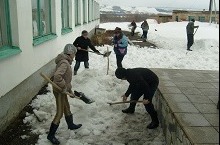 В рамках экологического двухмесячника, в школе прошел субботник по очистке территории школы от снега.