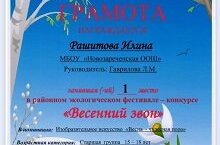 1 место в районном экологическом фестивале - конкурсе "Весенний звон". 14.05.2024