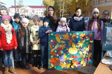 арт - студия «Акварельки», где дети выполняли пленэрные композиции, этюды за мольбертами, на планшетах, отражающие красивые уголки парковых зон, деревья, газоны, людей, архитектурные постройки обновленной площади, также, учащиеся увлеченно работали над декоративно – прикладной композицией «Осенняя фантазия» в технике аппликации из цветной бумаги и бумажной пластики. Элементы композиции: осенние листья деревьев, грибочки, веселая семья ежиков, ягоды рябины. Работы получились очень интересными, благодарные зрители рассматривали их с восхищением и большой радостью.