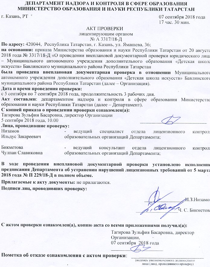 Акт проверки № А 3317/18-Д от 07.09.2018