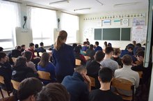 Профилактическую беседу со студентами провела Елена Давлетова. Она поговорила с ребятами о вреде и последствиях употребления наркотиков. Продемонстрирован документальный фильм «Наркотики. Секреты манипуляции» Общероссийской общественной организации «Общее дело», посвященный проблеме наркотизации молодежи, с его дальнейшим обсуждением. Проведена игра «Пирамида», которая дала возможность каждому участнику этой игры выяснить свой взгляд на проблему наркомании.