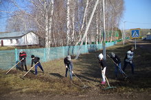 16 апреля в школе был организован субботник, Учащиеся и учителя школы очищали территорию школы, убирали мусор.
