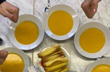 В завершении праздничной недели Повара ученицами 11 класса был приготовлен полезный, красивый,вкуснейший тыквенный крем-суп.
