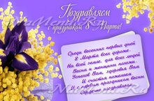 С 8 марта!!!! 06.03.2018 Милые женщины! Поздравляем Вас с 8 Марта! Этот красивый праздник в начале весны приходит к нам, когда всё оживает, расцветает и распускается. Пусть в вашей жизни будет вечная весна, пусть ярко светит солнце, пусть поют птицы, пусть дни будут светлыми и безоблачными. Улыбок, хорошего настроения, радости, счастья!!!!
