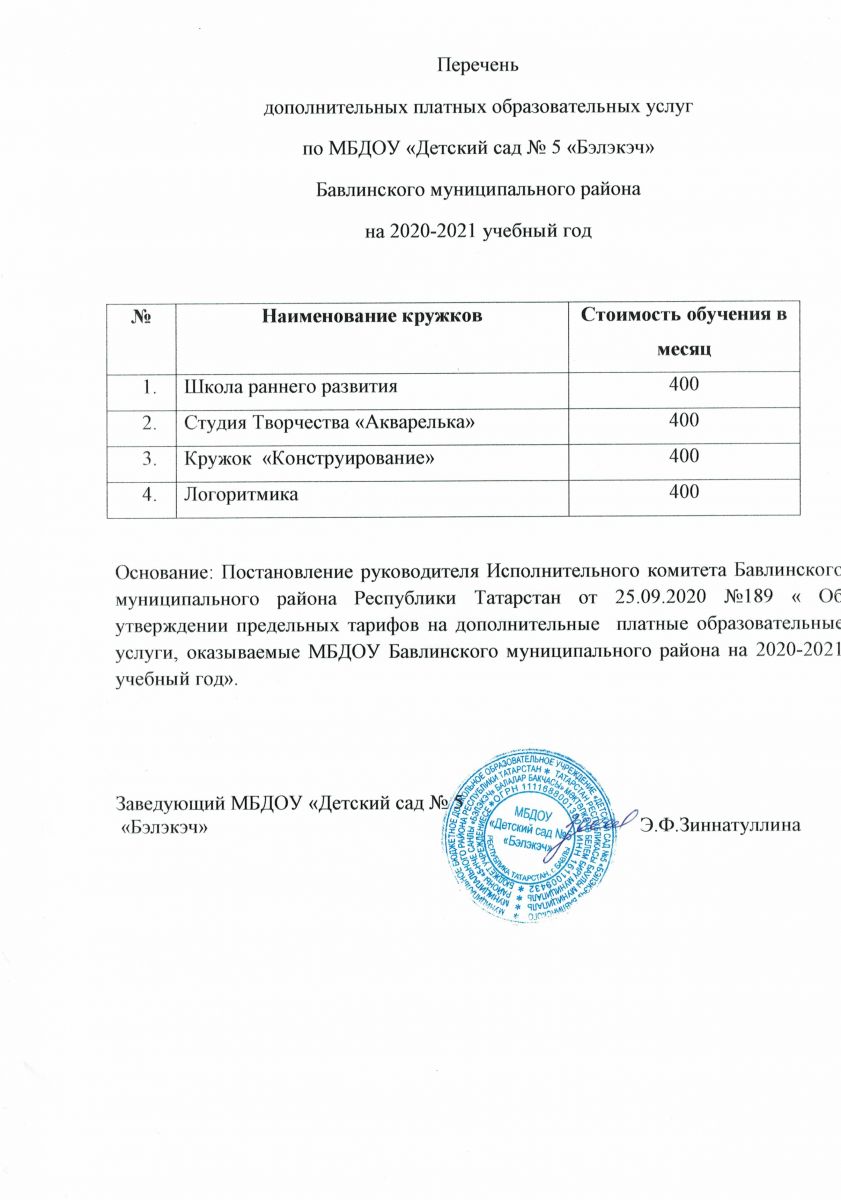 Перечень дополнительных платных образовательных услуг по МБДОУ 5