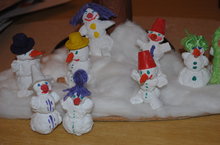 В старшей группе ребята подготовили макет "Забавные снеговики."