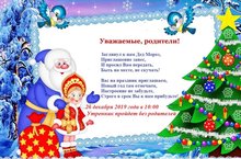 Уважаемые родители! Новогодний утренник состоится 26 декабря 2019 года в 10:00.