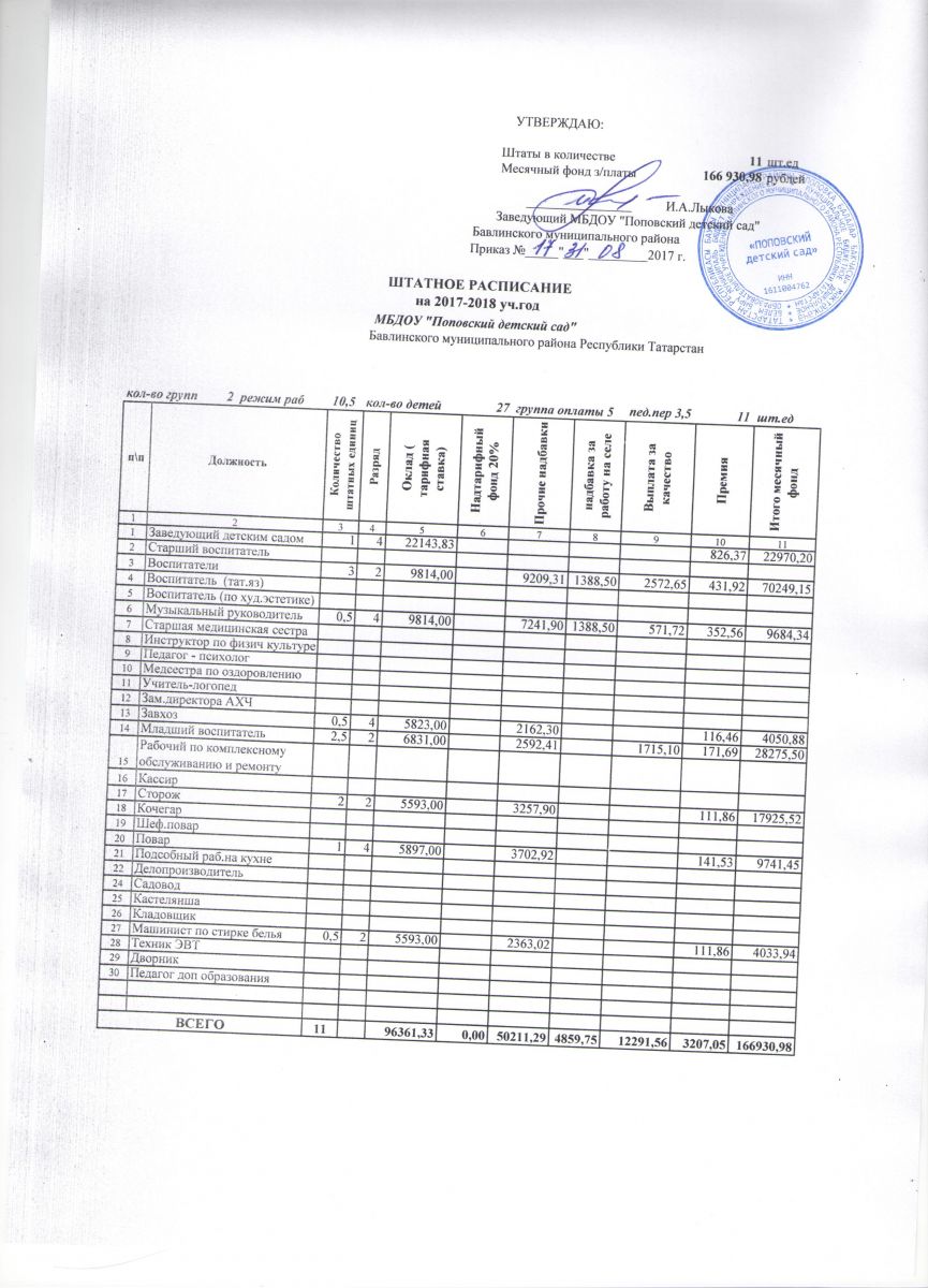 Штатное расписание 2017-2018