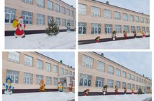 У дверей нашей школы гостей встречают сказочные персонажи.