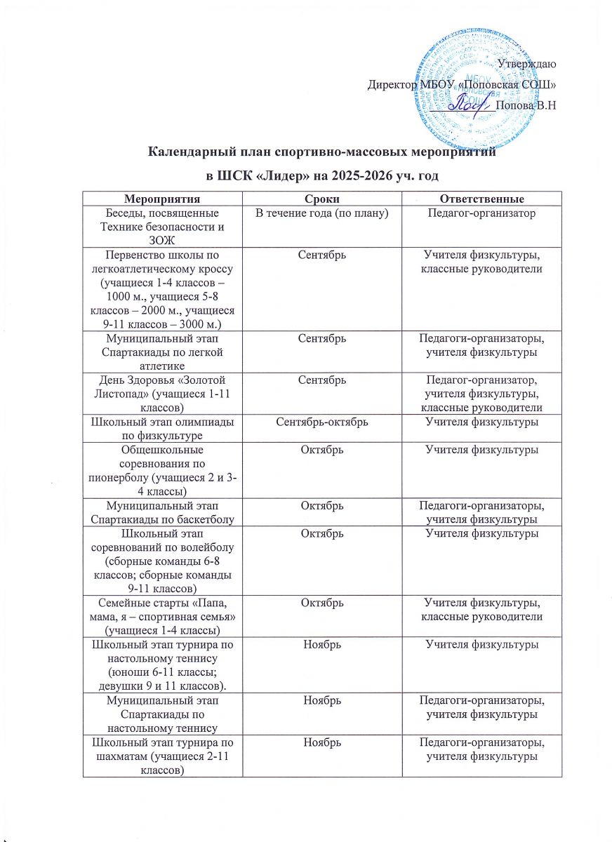 - Совет спортивного клуба «Лидер» на 2025-2026 уч. год