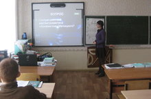 В рамках мероприятий по подготовке к 70 -летней годовщине Великой Победы и патриотического проекта , посвященного памяти военного парада в г. Куйбышев 7 ноября 1941 года и в рамках недели истории в школе проходят внеклассные мероприятия. Сегодня прошел Урок Мужества. Учитель истории Алтынбаева Арина Владимировна провела внеклассное занятие по данному направлению с использованием компьютерной презентации «Парад 7 ноября 1941 года в городе Куйбышев». Участниками этого мероприятия были учащиеся 8 класса.