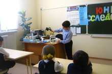 3 декабря в рамках недели начальных классов учащиеся 3-б класса ( кл. руководитель Л.В.Берникова) провели в 1- б классе праздник «Юный исследователь». Первоклассники получили ответы на вопросы: «Почему не тонет лимон?», «Как можно получить радугу в стакане?», «Можно ли перевернуть стакан с водой, при этом не пролив ни капли?». Им очень понравились опыты, презентации.