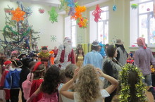 Очередная новогодняя Елка прошла сегодня в актовом зале школы. Школьники вместе с персонажами фильма «Приключения Буратино» водили хороводы, танцевали и участвовали в различных конкурсах.