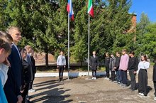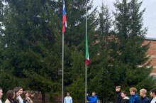 Мәктәптә флагны тантаналы күтәрү
