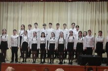 8 А класс (кл. рук. Минниханова О.Г.) принял участие в городском конкурсе патриотической песни "Время выбрало нас".