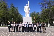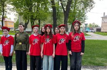 8 мая юнармейцы школы провели церемонию возложения гирлянды, изготовленную учащимися к памятнику в парке "Боевой и трудовой славы" города.
