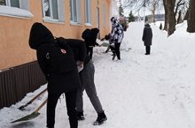 В последний день учебы третьей четверти в МБОУ СОШ 3 провели уборку территории. Ребята почистили фундамент школы от снега.