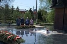 3 нче урта мәктәп коллективы Җиңүнең 75 еллыгы уңаеннан Мәңгелек утка гирлянда салды.
