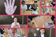 создать позитивный эмоциональный настрой.Каждый ребёнок вырезает ладонь на листе бумаги на каждом пальце пишет слова: