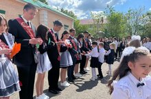 Во время торжественной линейки первоклассники выступили перед выпускниками со словами благодарности и подарили им самолётики будущего «Навигаторы Детства».
