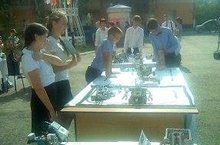 Ребята представили совместную работу по робототехнике посвященную 70-летию Бавлинской нефти. Данная композиция состоит из 4 роботов и 2-х механизмов, которые отвечают за обнаружение нефти, очистку территории, перенос готовой продукции и погрузку.