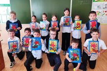 На уроках труда совместно с учителем Ганиевой Г.Р. ученики начальных классов изготовили аппликации из пластилина, посвященные Дню Победы