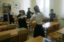 Перед началом учебных занятий необходимо хорошо проснуться! Этому способствует утренняя зарядка, упражнения которой активно выполняют учащиеся 6б класса.