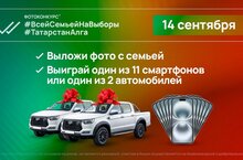 14 сентября, в день проведения выборов Раиса Татарстана и муниципальных депутатов пройдет фотоконкурс #ТатарстанАлга #ВсейСемьейНаВыборы. По его итогам можно выиграть автомобиль или смартфон