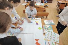 Учитель начальных классов Мухтасарова А. Л. провела увлекательное занятие по составлению панно из геометрических фигур "В стране геометрии" и Олимпиаду по математике для учеников 3-4 классов.