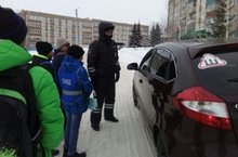 Отряд Юных инспекторов движения нашей школы совместно с сотрудниками ГИБДД провели акцию "Ребенок - главный пассажир!" и раздали водителям памятки.