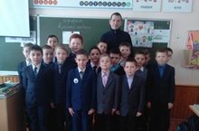 2а сыйныфы укучылары өчен Вотчинникова Ангелинаның әтисе белән очрашу оештырылды. Руслан Владимир улы Вотчинников малайларны бәйрәм белән котлады, бу бәйрәмнең мөһимлеген аңлатты. Ул үзенең армия сафларында хезмәт итүе турында сөйләде. Малайлар аны бик кызыксынып тыңладылар, сораулар бирделәр. Бу очрашу бик мавыктыргыч һәм файдалы булды.