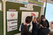 Во 2б классе (кл.рук Арысланова Л. Н.) прошёл классный час Орлята России, трек Доброволец. Тема: "От слова к делу". Цель: обобщение представления детей о доброте, побуждение к совершению добрых поступков.